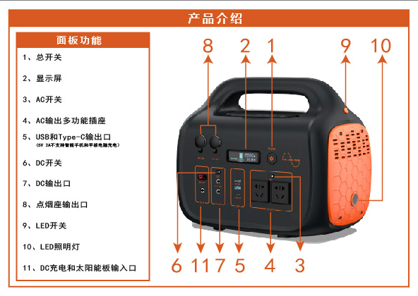 - Suporta carregamento e descarregamento ao mesmo tempo. Tem uma ampla gama de utilizações. Ele pode ser usado como uma fonte de alimentação UPS online ou como uma fonte de alimentação reserva de emergência externa. Ele pode atender a equipamentos médicos internos, pequenas impressoras, várias lâmpadas, aquecedores de pequenos tanques de peixes, notebooks e camping ao ar livre. É usado quando a iluminação e o fornecimento de energia CA são necessários em ocasiões como fotografia, emergência contra incêndio, resgate de emergência e socorro em desastres.