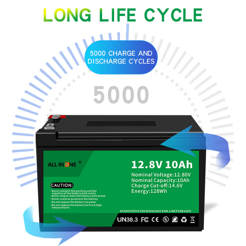 Esta bateria 12.8V 10Ah LFP pode ser uma substituição perfeita para a bateria AGM / GEL, ALLIN ONE também fornece baterias personalizadas com diferentes capacidades, dimensões e funções de acordo com os requisitos específicos do cliente.