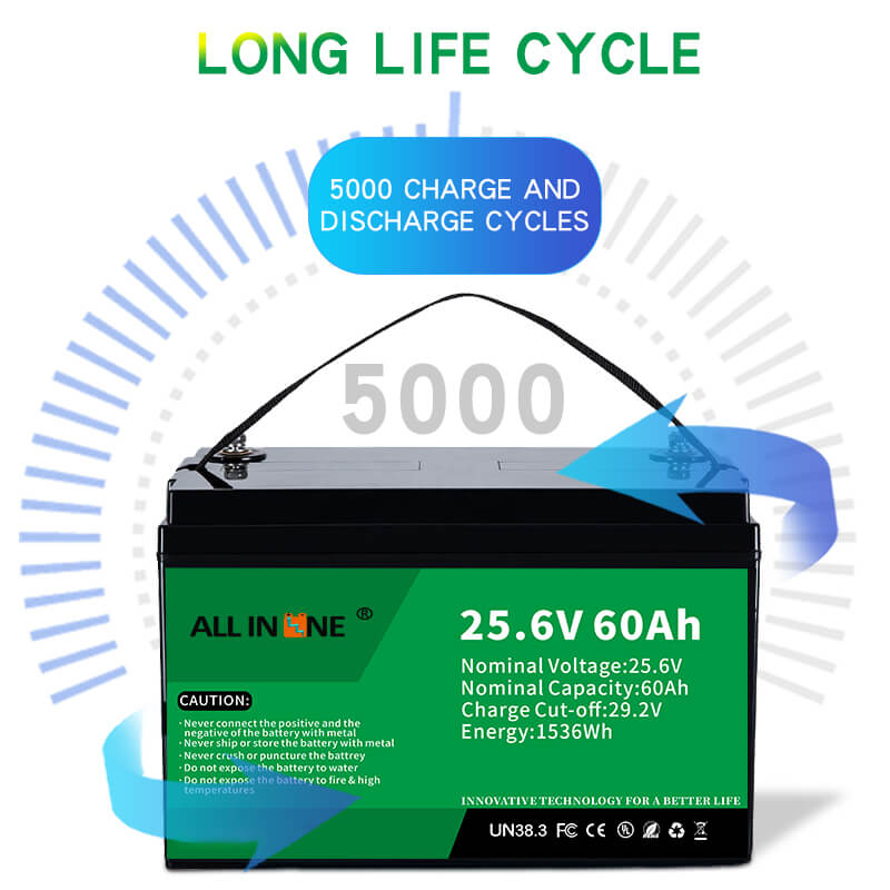 Esta bateria 25.6V 60Ah LFP pode ser uma substituição perfeita para a bateria AGM / GEL, ALL IN ONE também fornece baterias personalizadas com diferentes capacidades, dimensões e funções de acordo com os requisitos específicos do cliente. Em comparação com as baterias de chumbo-ácido AGM / GEL, as soluções de substituição ALL IN ONE Li-ion (LiFePO4) têm as seguintes vantagens: