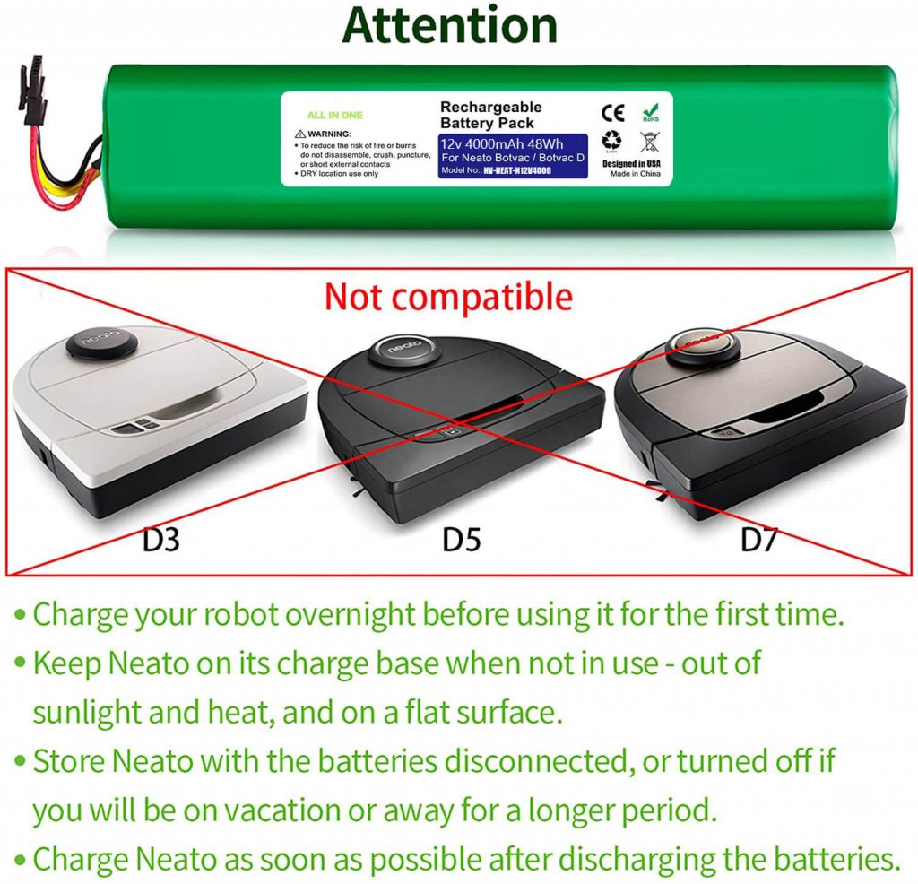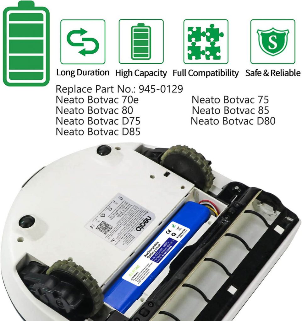 Compatível com Modelos de Ferramentas | Compatível com: * Substitua a peça nº: 945-0129 * Neato Botvac 70e * Neato Botvac 75 * Neato Botvac 80 * Neato Botvac 85 * Neato Botvac D75 * Neato Botvac D80 | |||