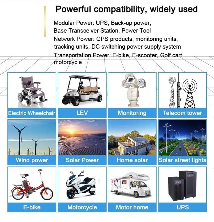 7. Amplamente utilizado para armazenamento de sistema solar fora da rede, backup de telecomunicações, data center central ... etc.