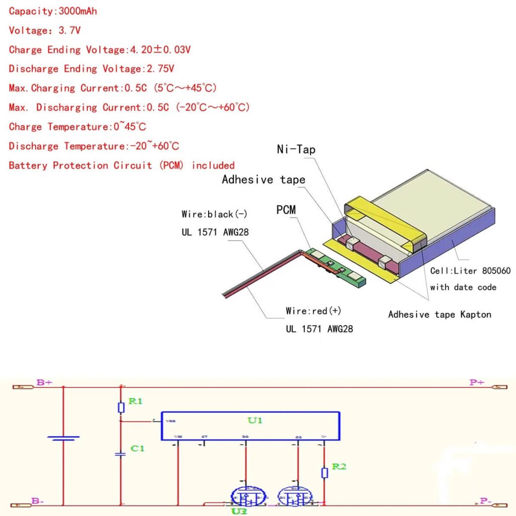 | Energy: | 11.1 Wh | Size: | 8 mm*50 mm*60 mm |