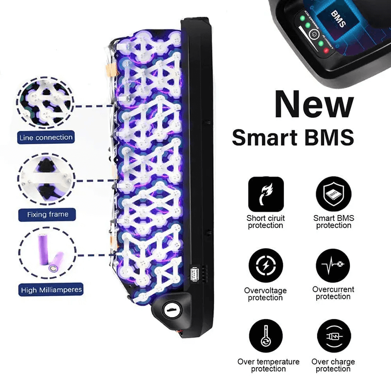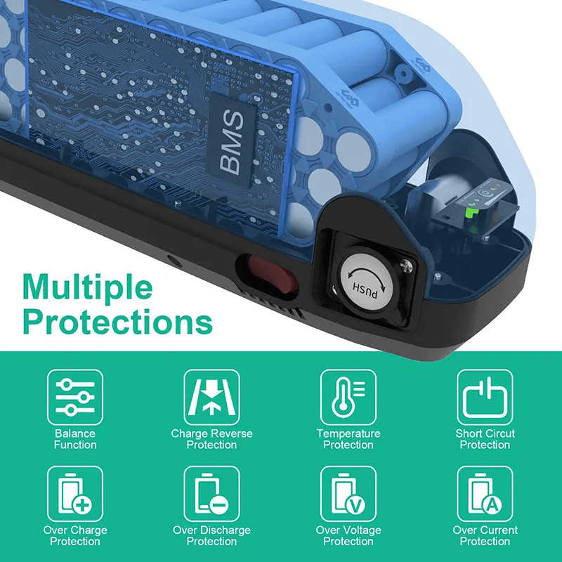 A placa de circuito interno fornece proteção contra sobrecarga, descarga excessiva e curto-circuito, por meio do monitoramento de uma única cadeia de células. Também permite que cada bateria obtenha função de balanceamento independente