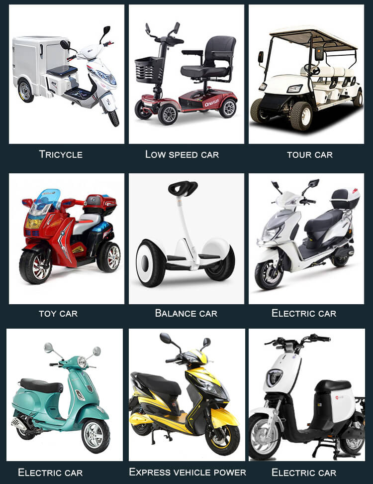 ♦ E-car, carrinho de golfe / carro, E-bike, Scooter, RV, AGV, Marine, Carro turístico, Caravana, cadeira de rodas, E-sweeper, limpador de piso,