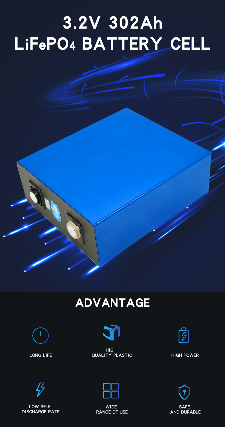 Esta célula de bateria LiFePO4 de 3,2 V 302Ah com certificação UL tem as seguintes vantagens: