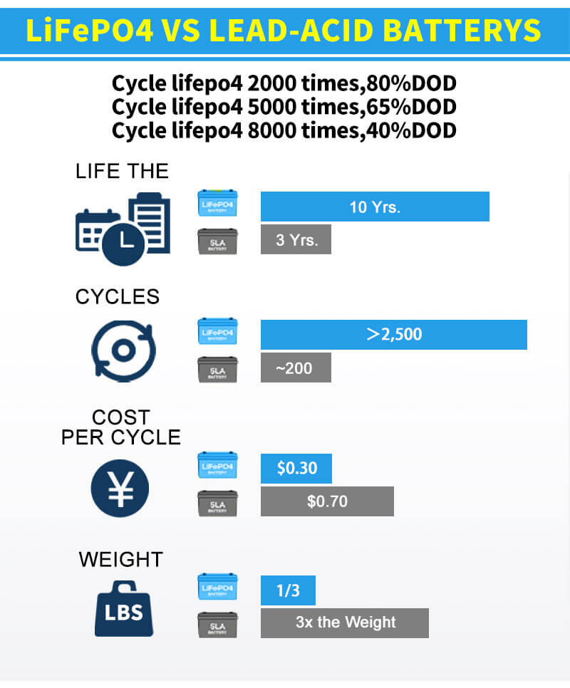 ♦ Segurança superior: a química do fosfato de ferro e lítio elimina o risco de explosão ou combustão devido à sobrecarga de alto impacto ou situação de curto-circuito