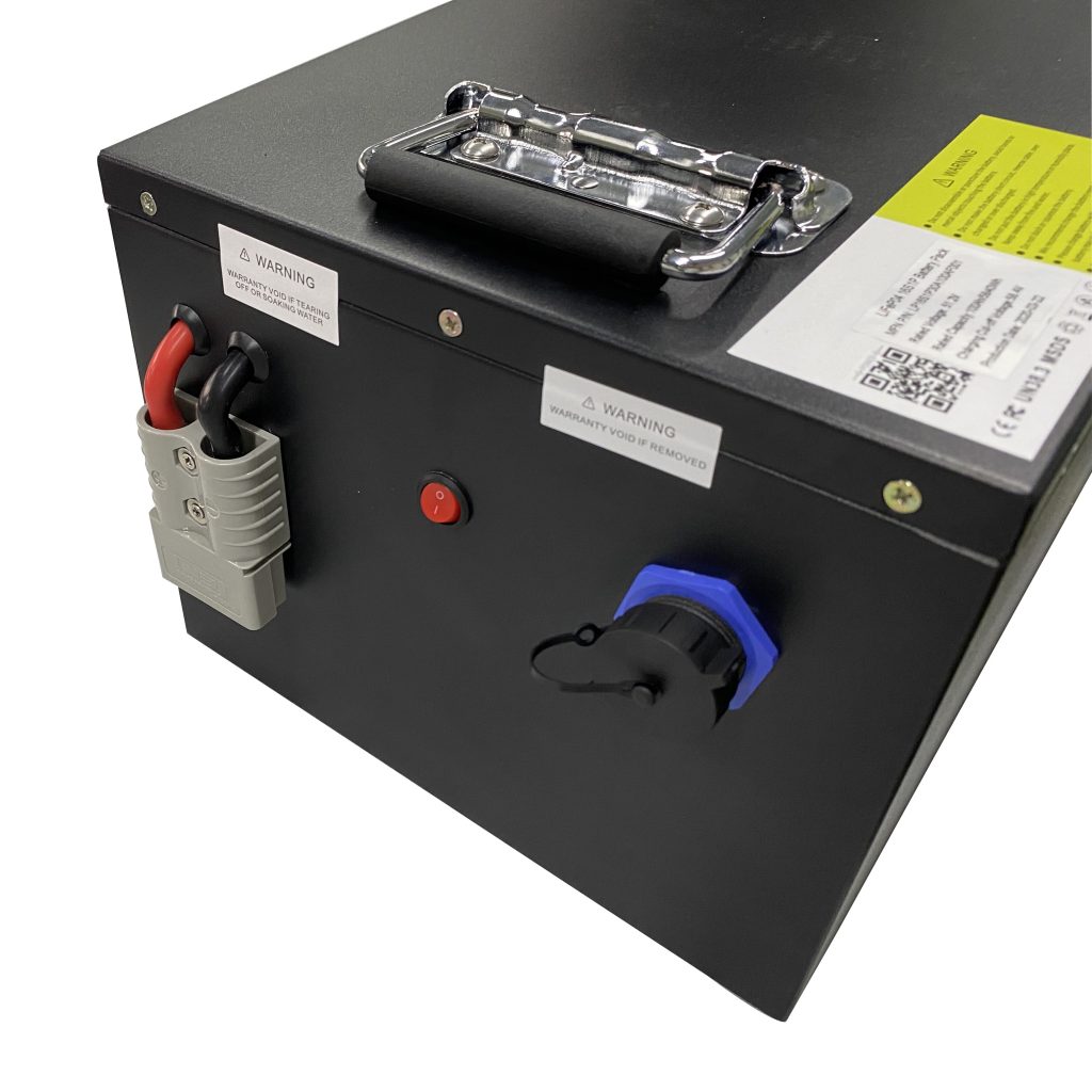 A bateria 16S1P 48V 100Ah é uma bateria LiFePo4 com sistema de gerenciamento de bateria integrado, voltagem normal de 48V, capacidade nominal de 100Ah, com cabos AWG de cm de comprimento para carga e descarga (vem com fios desencapados por padrão, mas o conector pode ser personalizado de acordo ) É usado principalmente em ferramentas elétricas, brinquedos elétricos, bicicletas elétricas, scooters elétricos, barcos elétricos e assim por diante.